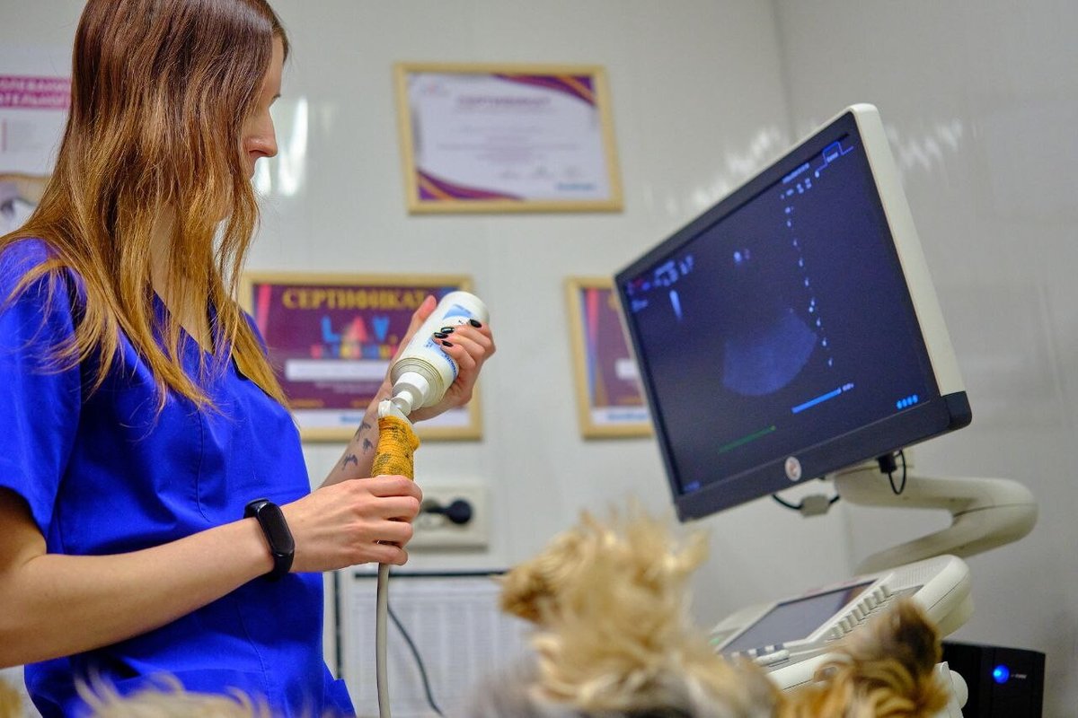 Я осталась в полном восторге от посещения врача! Специалист качественно провёл УЗИ моей собаке — немецкому шпицу. Он был очень добр и внимателен к животным и их хозяевам. Исследование проводилось для того, чтобы выяснить, беременна ли собака.